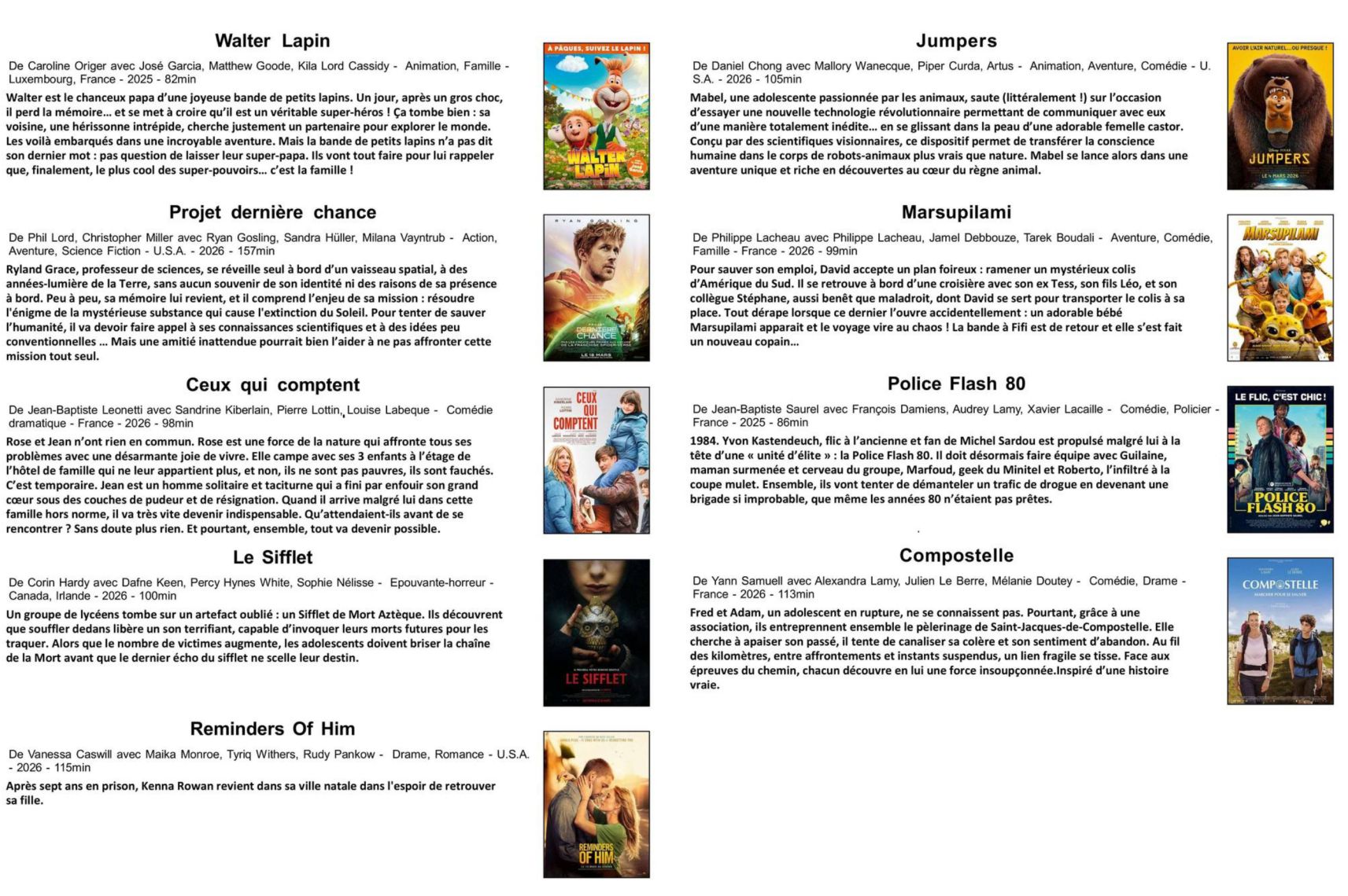 PROGRAMME DE VOTRE CINÉMA DU 25 AU 31 MARS