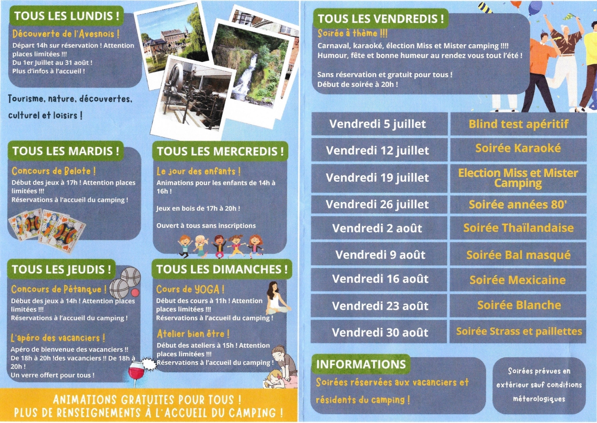 PLUS DE RENSEIGNEMENTS A L'ACCUEIL DU CAMPING !